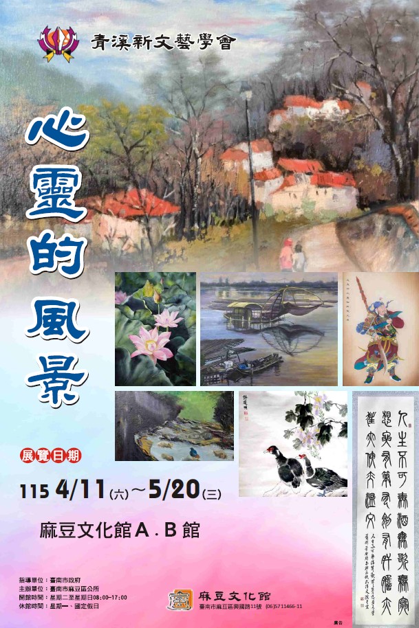 【展覽期間】:115年4月11日至115年5月20日 【展覽地點】:麻豆文化館AB館 (臺南市麻豆區興國路11號1樓) 【開放時間】:星期二至日08:00~17:00 【休館時間】:星期一、國定假日、民俗節日當日休館 【聯絡電話】:(06)5721131#134