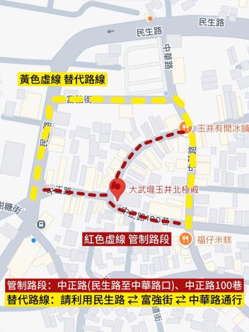 檢送玉井區「115年金馬慶元宵暨登革熱防治誓師大會」交通管制公告及範圍圖
